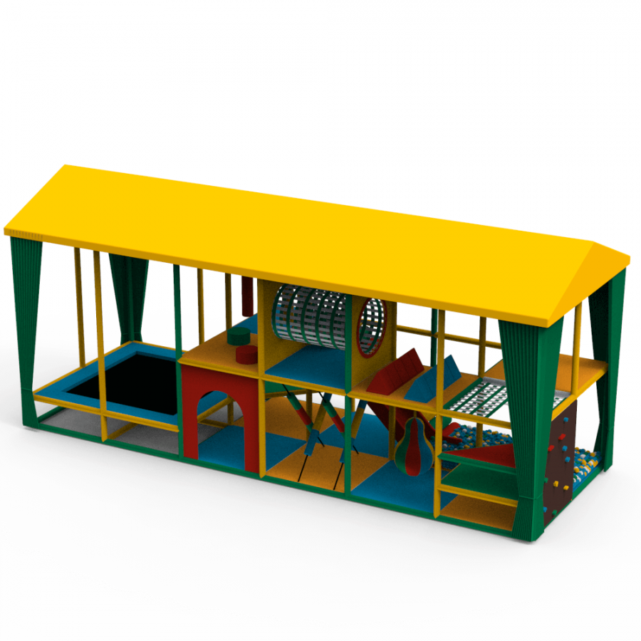 Продуманная конструкция с различными игровыми секциями и встроенными спортивными элементами позволяет детям свободно перемещаться по лабиринту, исследовать пространство и весело проводить время.