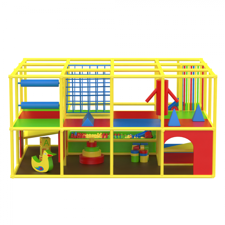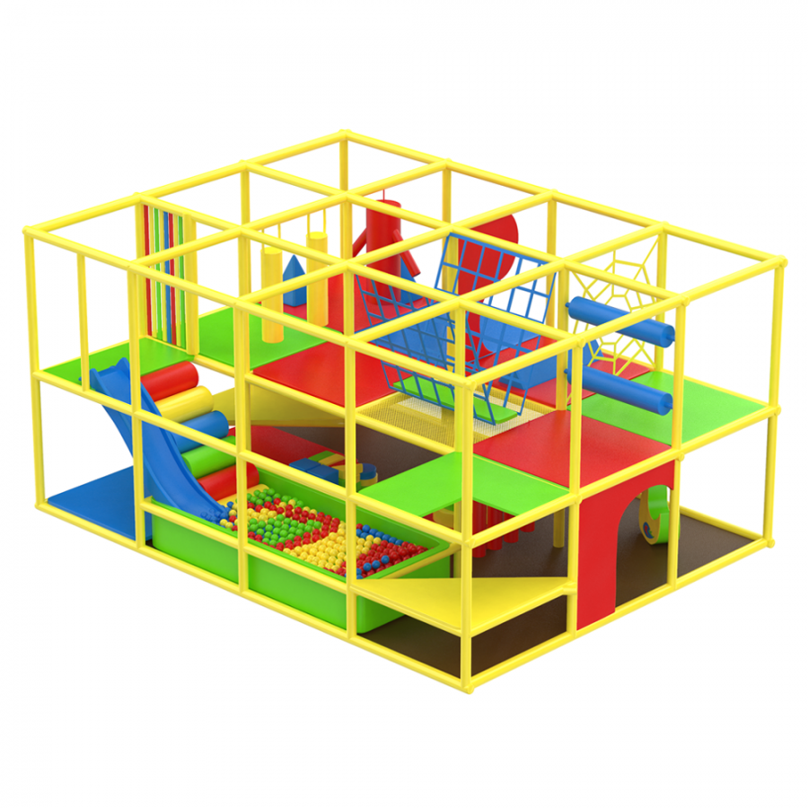Лабиринт включает множество игровых секций с разнообразными элементами: лазалки, переходы и сухой бассейн с шариками, что делает игровой процесс динамичным и увлекательным. Такой формат способствует высокой вовлечённости детей и стимулирует активную игру.