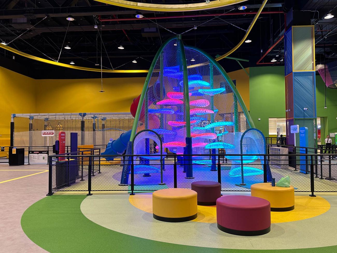 Игровая зона позволяет лазать, балансировать и подниматься уровень за уровнем, развивая координацию, выносливость и уверенность в движении. Закрытая сетчатая конструкция обеспечивает безопасность.