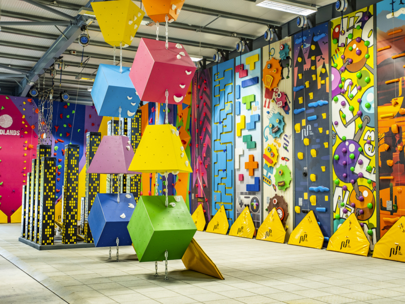 Яркий дизайн и разные уровни сложности делают скалодром интересным для детей любого уровня подготовки.