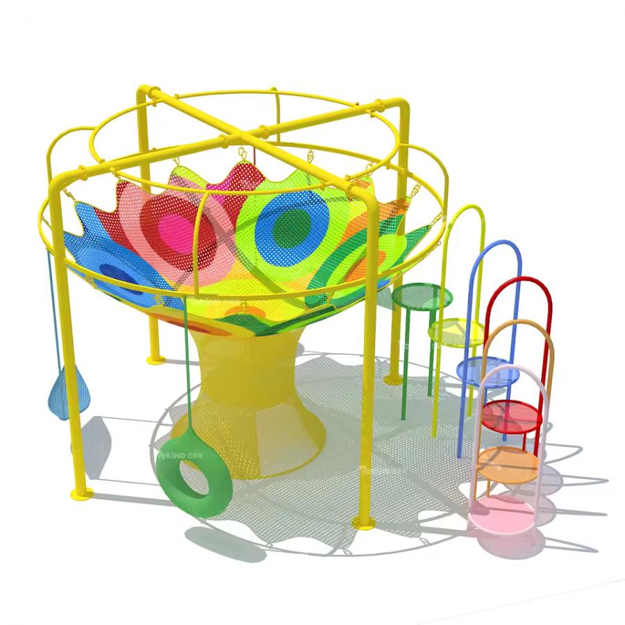 Вязаный лабиринт — это уникальный элемент детской игровой зоны, выполненный из прочной цветной сетки в виде объёмной конструкции. Он сочетает лазание, балансировку и исследование пространства, создавая увлекательную игровую среду для детей.